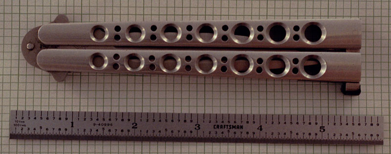 I've received several requests for some sort of guide to recent production Benchmade Balisongs. It seems some people have one, but they're not sure which one it is. I've also seen some in the auctions that are mislabeled. So, I went to the bank and withdrew a few Balisongs (you can do that here in Oregon, you know) and put together a little display of recent production Balisongs from Benchmade.